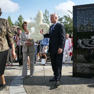 El gobernador de Luisiana, Bobby Jindal; el alcalde de Nueva Orleans, Mitch Landrieu, y la líder de la minoría demócrata en la Cámara de Representantes, Nancy Pelosi, encabezaron la ceremonia y depositaron una ofrenda floral en el Monumento a la Memoria del Huracán Katrina.