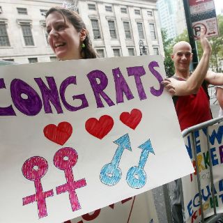 NUEVA YORK, ESTADOS UNIDOS (25/JUL/2011).- Una fiebre de bodas se apoderó de Nueva York ayer domingo cuando cientos de parejas de hombres y mujeres se aprestaban a casarse durante el primer día de vigencia de la ley sobre matrimonio homosexual en el Estado. Nueva York es la sexta más grande Entidad en los Estados Unidos en permitir estas uniones civiles. En Connecticut, Iowa, Massachusetts, Nueva Hampshire, Vermont y el distrito de Columbia también está permitido.