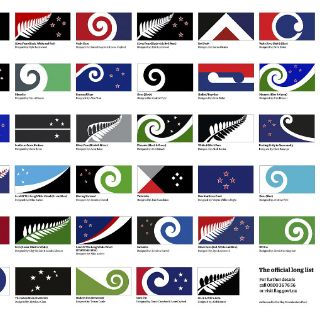 Casi todas las 40 finalistas incluyen uno de tres elementos clave, o una combinación de ellos: el koru, el helecho plateado y la Cruz del Sur.