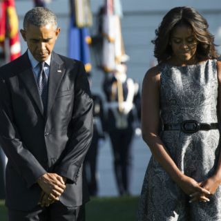 Barack Obama y su esposa Michelle encabezaron este viernes en el jardín de la Casa Blanca un minuto de silencio para recordar el 14º aniversario de los