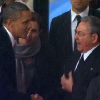 El saludo entre los líderes de dos enemigos de la Guerra Fría ocurrió durante una ceremonia centrada en el legado de reconciliación de Mandela. Obama estaba saludando a varios líderes mundiales y jefes de Estado que asisten al funeral en Johannesburgo. También estrechó la mano de la presidenta brasileña Dilma Rousseff, quien ha chocado con Obama por las supuestas actividades de espionaje de la NSA.