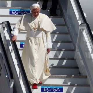 SANTIAGO DE CUBA (26/MAR/2012).- El Papa Benedicto XVI llegó el lunes a Cuba procedente de México para una visita de tres días, ocasión que le permitiría afianzar sus relaciones con La Habana y elevar el peso social de la Iglesia Católica cuando la isla vive un proceso de reformas para reactivar su economía socialista.