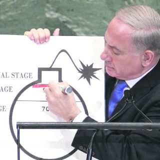 Irán debe ser frenado antes de que llegue a 90% de desarrollo de su programa atómico, dijo Netanyahu, en una histriónica intervención, en la que usó un gráfico en el que una bomba con la mecha encendida representaba el programa de enriquecimiento iraní.