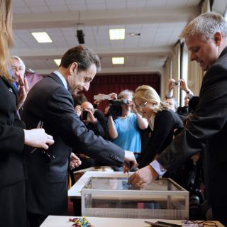Sarkozy se retiró del centro de votación sin hacer declaraciones.