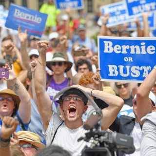 Oradores de la marcha acusaron que Clinton hizo trampa para obtener la nominación con la complicidad de "las empresas de medios".