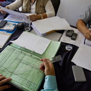 El escrutinio final se realiza acta por acta por parte de delegados de ambos partidos y miembros de juntas receptoras de votos, bajo la vigilancia de fiscales electorales y representantes de otras entidades públicas.