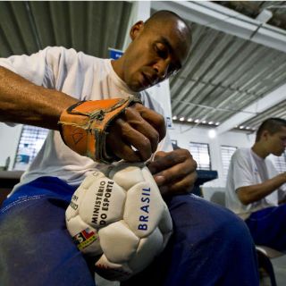 La fabricación de pelotas, camisetas deportivas y gorros, que luego son donados a escuelas, instituciones u obras sociales, es parte del programa "Pintando la Libertad" que el ministerio de Deportes desarrolla en cárceles de Brasil, un país apasionado por el fútbol, que acogerá el Mundial el año próximo.