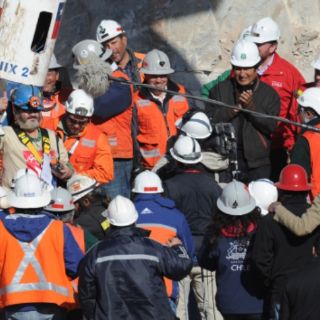 MINA SAN JOSÉ, CHILE (13/OCT/2010).- Jorge Galleguillos, de 56 años, arribó a la superficie la mañana de este miércoles y se convirtió en el undécimo rescatado de los 33 mineros atrapados desde el 5 de agosto en la mina San José, en el norte de Chile, constató la AFP.