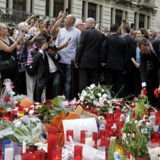 Por la tarde, Felipe y Letizia, ambos vestidos de oscuro, fueron a las Ramblas a depositar una corona de flores en un altar improvisado en memoria de las víctimas, flanqueados del presidente del gobierno catalán, Carles Puigdemont, y la alcaldesa de Barcelona, Ada Colau.