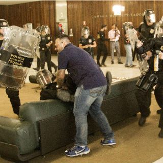 BRASILIA, BRASIL (18/ABR/2017).- Una manifestación de policías y agentes de seguridad pública intentó este martes ingresar y ocupar el Congreso de Brasil, lo que provocó la reacción de la policía legislativa y enfrentamientos con el uso de gas pimienta y bombas de efecto moral.