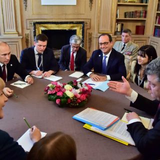 Por la tarde, Putin y Poroshenko se volvieron a reunir, pero solamente con la presencia a Merkel y Hollande en un formato denominado "Cuarteto de Normandía".