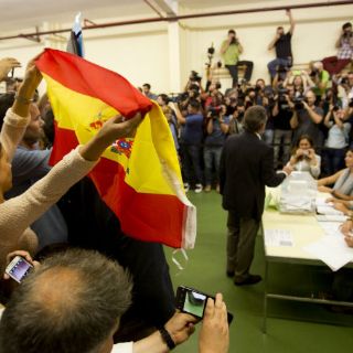 Presidente catalán vota entre gritos por bandera española