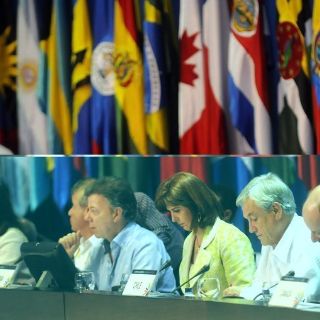 La cita comenzó al mediodía con un acto abierto a la prensa, en el que presidente de Colombia, Juan Manuel Santos, puso sobre la mesa uno de los temas más espinosos, la inclusión de Cuba en las siguientes citas continentales.