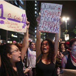 "Estamos todas sangrando", "La culpa no es de la víctima" o "Luchar sin Temer", se leía en algunos de los carteles de las manifestantes.