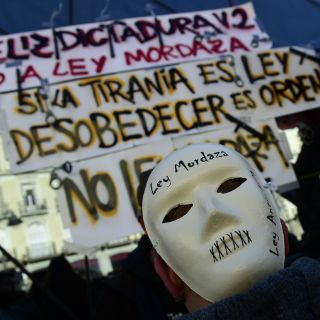 ''La voz del pueblo no es ilegal, libertad de expresión, libre manifestación'' gritaban los manifestantes contra una ley promovida por el Partido Popular (PP, derecha, en el poder), que aún debe ser adoptada por el Senado.