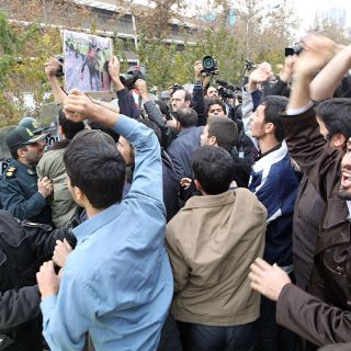 IRAN (13/DIC/2010).- Estudiantes iraníes se enfrentan a la Policía antidisturbios durante una manifestación frente a la embajada británica en Teherán. Cientos de jóvenes protestaron para condenar el asesinato del científico nuclear iraní, Majid Shahriari, que murió el 29 de noviembre en un coche bomba.