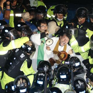 Unos ocho mil policías fueron desplazados hasta el área cercana al lugar, donde docenas de civiles y agentes resultaron heridos y fueron trasladados a hospitales, sin que haya transcendido el número exacto ni la gravedad de las lesiones, informó la agencia Yonhap.