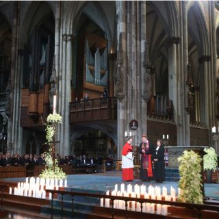 Ciento cincuenta velas idénticas junto al altar mayor de la catedral de Colonia presidieron la ceremonia ecuménica, una por cada víctima del siniestro, incluido el copiloto Andreas Lubitz, que presuntamente estrelló de modo intencionado el Airbus 320 que cubría el trayecto entre Barcelona y Düsseldorf el 24 de marzo.