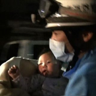 Rescatan a bebé de entre escombros tras sismo en Japón