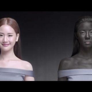 En un momento del anuncio su piel se va oscureciendo, mientras una segunda modelo más joven parece ocupar su puesto, para subrayar la importancia de tener la piel clara.