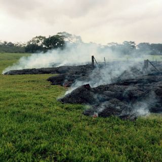 El fin de semana la lava cruzó una calle en Pahoa Village, un pueblo importante en el distrito rural de Puna. El martes por la mañana las autoridades de defensa civil dijeron que estaba a unos 466 metros (510 yardas) de Pahoa Village Road, que cruza directamente a través del centro.