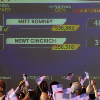A falta del cierre de los colegios electorales en el oeste del estado, el exgobernador de Massachusetts Mitt Romney obtiene un 48% de los votos, por un 31 % de Gingrich, expresidente de la Cámara de Representantes.