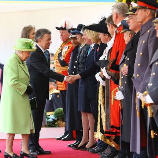 A continuación, con toda la pompa que requiere la ocasión, la soberana británica y el duque de Edimburgo han dado la bienvenida formal a este país al político colombiano en el Pabellón Real.