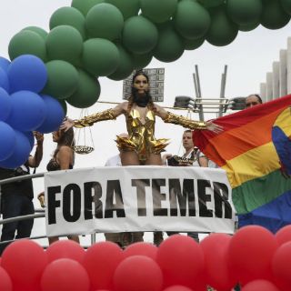 orgullo gay de Sao Paulo, dedicada este año a los derechos de la comunidad transexual, pero donde también hubo protestas contra el nuevo gobierno de corte conservador del presidente interino,