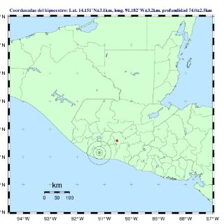 El movimiento telúrico ocurrió a las 21H25 locales (21:25 tiempo de México) con epicentro 85.1 km al suroeste de Ciudad de Guatemala, en el departamento de Escuintla, a una profundidad de 74 km, detalló el organismo en un comunicado.