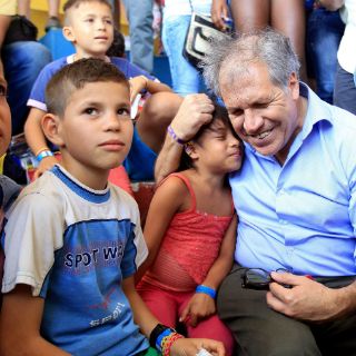 Almagro saludó a los deportados y abrazó a varios de los 220 niños que salieron con sus padres de Venezuela y permanecen en los diferentes albergues que fueron habilitados por el gobierno del presidente colombiano Juan Manuel Santos.