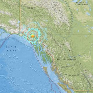 El epicentro del primer temblor, que ocurrió a las 12:31 GMT, fue localizado a 2.2 km de profundidad en el territorio Yukon en Canadá, una reserva ambiental ubicada a 83 kilómetros al noroeste de Skagway, Alaska. Fue seguido por una serie de réplicas, la más fuerte de 5.2.