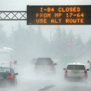 Con temperaturas rondando el punto de congelamiento, la autopista Interestatal 84 fue cerrada en un tramo de aproximadamente 72 kilómetros (45 millas) en el área noreste de Portland y en otro tramo más al este debido a condiciones de ventisca. Los funcionarios de transporte no tenían planes inmediatos de reabrir la carretera que conecta Oregon con Idaho.