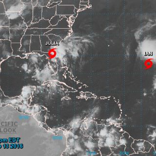 A 10 Km al oeste de Jacksonville (norte de Florida), ''Julia'' se desplaza lentamente hacia el noroeste con vientos máximos sostenidos de 65 km por hora, informó el Centro Nacional de Huracanes (NHC), con sede en Miami.
