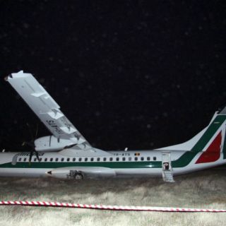 El aparato, un ATR 72, que había partido de Pisa (norte), se encuentra en medio de la hierba, y está ligeramente inclinado con el tren de aterrizaje roto, indicaron los bomberos y la autoridades aeroportuarias.