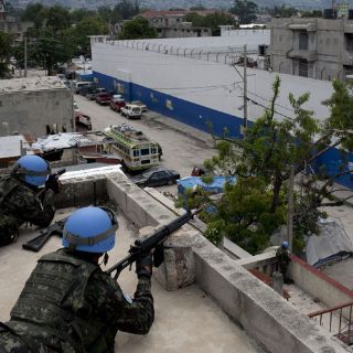 Elementos de las fuerzas de paz de la ONU provenientes de Jordania, Brasil y otras naciones utilizaron vehículos blindados y fusiles de asalto para mantener alejados a espectadores y periodistas después del disturbio.