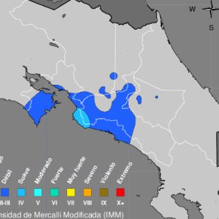 El sismo fue sentido con fuerza en la costa del Pacífico central y de manera leve en otras partes de Costa Rica.