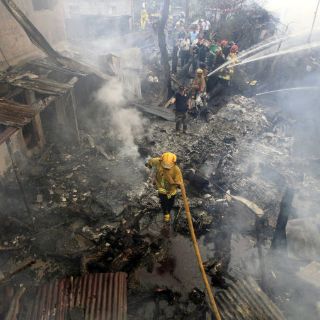 El incendio provocado por la aeronave se extendió rápidamente y calcinó medio centenar de chabolas, construidas con materiales altamente inflamables y apiñadas unas contra otras.