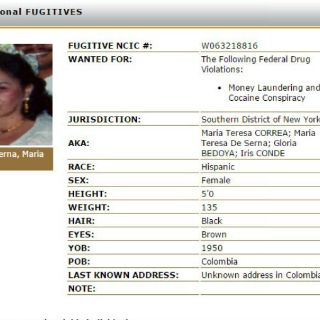 CIUDAD DE MÉXICO (13/ENE/2016).- Una mujer de Colombia es ahora la narcotraficante más buscada por la agencia antidrogas de EU (DEA) tras la captura del mexicano Joaquín “El Chapo” Guzmán el pasado viernes. Se trata de María Teresa Osorio de la Serna, quien estuvo vinculada al extinto