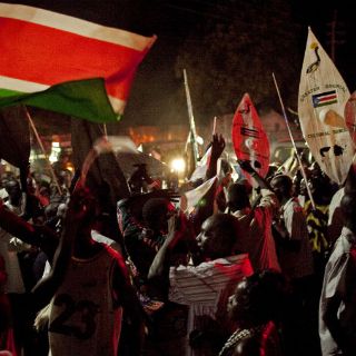 JUBA, SUDÁN DEL SUR (08/JUL/2011) - Una multitud en delirio celebraba la medianoche del viernes al sábado, en las calles de Juba, la llegada del día de la independencia de su país, Sudán del Sur.