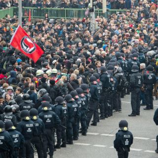 Se produjeron algunos altercados entre los antidisturbios y grupos jóvenes de la izquierda radical que intentaron repetidamente romper el cordón policial alrededor del recinto de concentración de los ultraderechistas.