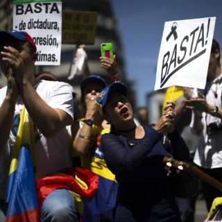 "Queremos que la dictadura se vaya del país; que vuelva a haber libertad en Venezuela. Por eso estamos aquí, para aportar un granito de arena", dijo Lizet Morales, que vino desde Alicante (sureste) y lucía una pancarta con el retrato del encarcelado líder opositor Leopoldo López y el lema "Leopoldo Libertad Ya".