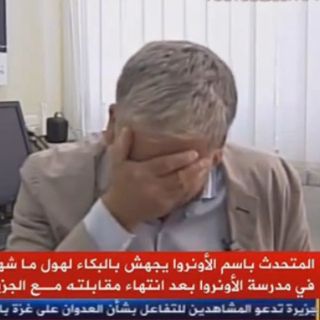 Christopher Gunness rompe en llanto durante una entrevista sobre el conflicto bélico