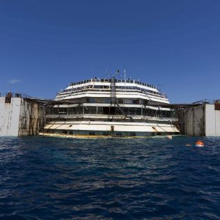 El crucero de 290 metros de eslora está siendo reflotado en una amplia operación para ser trasladado a un desguace en Génova (noroeste de Italia).