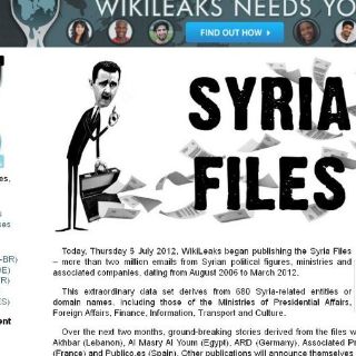 WikiLeaks empezó a publicar los archivos de Siria, más de dos millones de correos electrónicos de figuras políticas sirias, ministerios y compañías asociadas que datan de agosto de 2006 a marzo de 2012