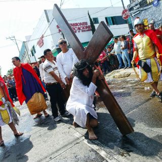 Fieles realizan la representación del Viacrusis del barrio de Analco