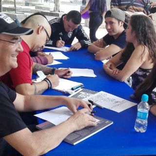 Los caricaturistas Alejandro Ochoa, Osvaldo, Ismael y Daniel regalaron su talento a distintas personas que se participaron en la campaña.
