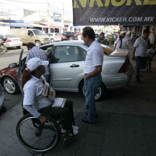 A media cuadra se topó con un taxi, cuyo chofer prefirió meterse a un estacionamiento, pero dejó al descubierto a dos de los más grandes enemigos de las personas con alguna discapacidad motora: las banquetas en mal estado y las rampas irregulares.