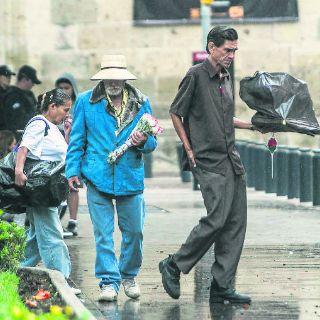GUADALAJARA, JALISCO (28/NOV/2015).- La discreción es básica para los comerciantes ambulantes que siguen trabajando en el polígono prohibido del Centro Histórico. Las flores artificiales ya no las exhibe como antes, las lleva en una bolsa negra y el vendedor sólo porta una en la mano y las ofrece sin gritar.