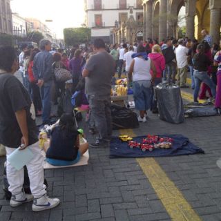Aunque no es un grupo numeroso, quienes cierran la vialidad se organizan para tender sus productos sobre el arroyo vehicular y afuera del Ayuntamiento de Guadalajara y así poner al punto de colapso el primer cuadro.