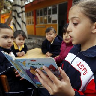 GUADALAJARA, JALISCO (15/FEB/2012).- Enrique tiene 5 años y los ojos puestos en un cuento de princesas de Disney. No para de sonreir. Y es que le están contando que dice uno de los mil libros que la American School ha donado este año al Jardin de niños Cipriana Gutierrez Rodríguez como parte de su programa de fomento a la lectura